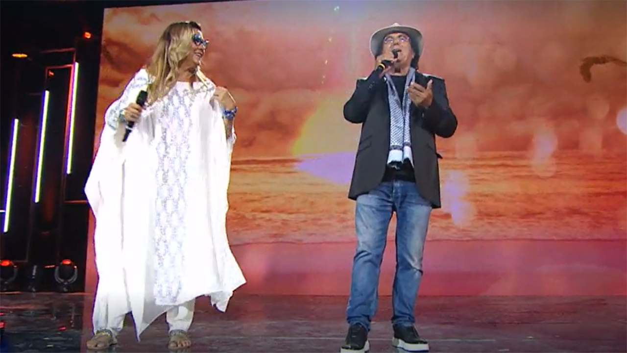 Prima di iniziare l’esibizione di coppia il cantante è uscito da dietro le quinte da solo, lanciandosi in uno scambio di battute con Mara Venier nell’attesa che lo raggiungesse anche la ex moglie. In questo lasso di tempo, Carrisi ha spiegato alla conduttrice di aver incontrato Padre Pio quando aveva solo undici anni; dopo, si è esibito in solitaria.