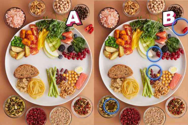 Questa tavola piena di ogni ben di Dio ossessionerà il tuo sguardo finché non riuscirai a capire cosa manca nella foto B. Per farlo, hai 30 secondi. Riguardo alla soluzione, non possiamo dirti molto, ovviamente: solo che le differenze da scovare sono 4. Non tantissime, e ad essere onesti, nemmeno troppo difficili da vedere.
