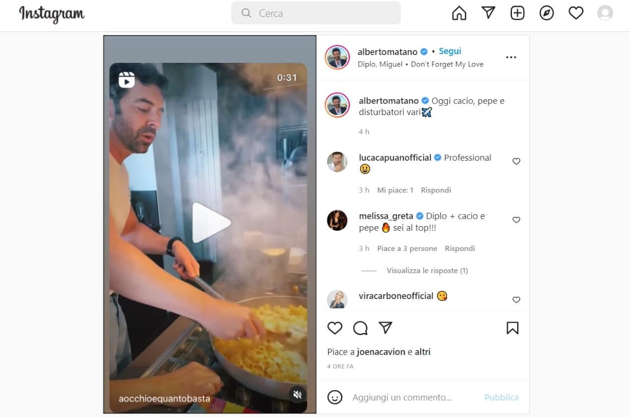 “Oggi cacio, pepe e disturbatori vari✈️” si legge invece nella clip che riportiamo qui di seguito, tratta sempre dalle storie su Instagram di Alberto Matano. Il quale, per la cronaca, da diversi anni vive a Roma, dove si è trasferito dalla Calabria per lavoro. E’ infatti nella città Eterna che ha sempre svolto la sua professione: prima come giornalista e ora come conduttore televisivo. E la sua è una casa davvero molto bella: si tratta di un appartamento nel Centro della capitale, con arredamento minimal ma di gran gusto. Ma la vera ciliegina sulla torta è l’ampio terrazzo: un lusso per pochi in una grande metropoli. Il suo appartamento gode di un bellissimo spazio esterno, con molto verde, dove riceve spesso tantissimi amici per trascorrere un po’ di tempo in bella compagnia.