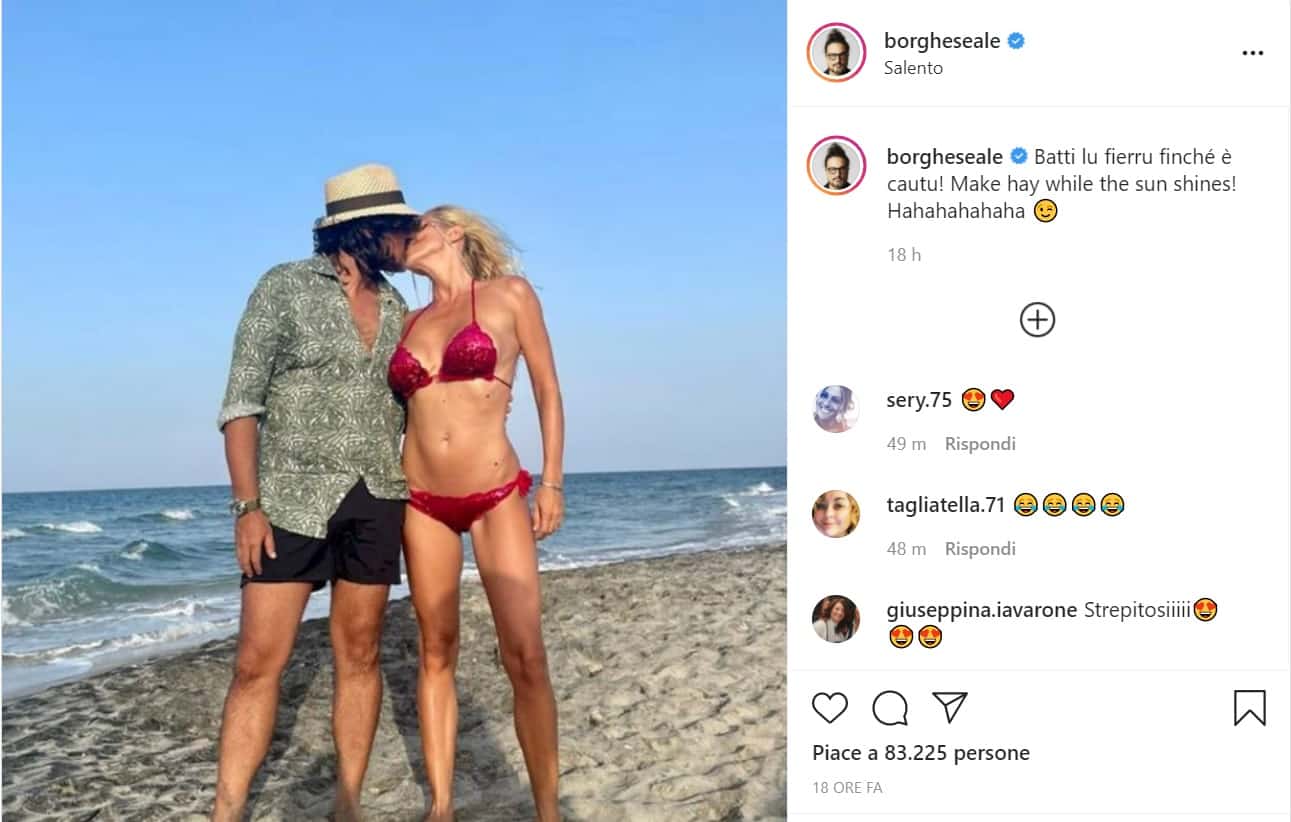 “Batti lu fierru finché è cautu! Make hay while the sun shines! Hahahahahaha 😉”: così scrive Alessandro Borghese nel suo ultimo post su Instagram, accompagnato dalla foto “caliente” che in queste ore sta tenendo banco nel mondo del web. Lo chef romano e Wilma Oliviero sono sposati dal 2009 e sembrano amarsi come il primo giorno. I Nostro, alludendo agli anni che passano, invita a non lasciarsi scappare nessuna occasione che la vita ci offre.