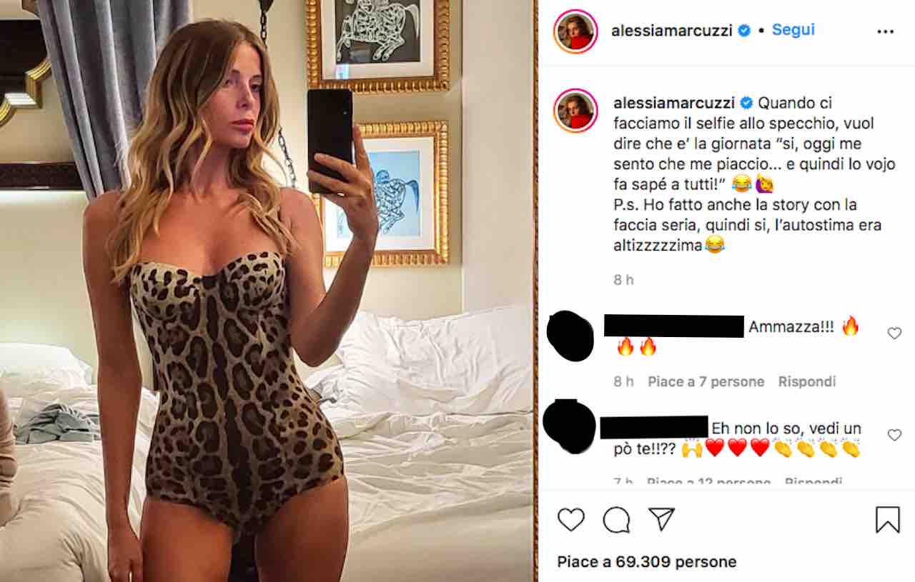 “Oggi me sento che me piaccio… e quindi lo vojo fa sapé a tutti!” continua la conduttrice, aggiungendo alcune emoji che ridono. Il pubblico sembra aver apprezzato sia lo scatto provocante che l’autoironia con cui Alessia si descrive. “Ho fatto anche la story con la faccia seria” ha concluso la donna (riferendosi alle storie di Instagram, in cui appare nel bagno della sua camera d’albergo). “Quindi si, l’autostima era altissima”.