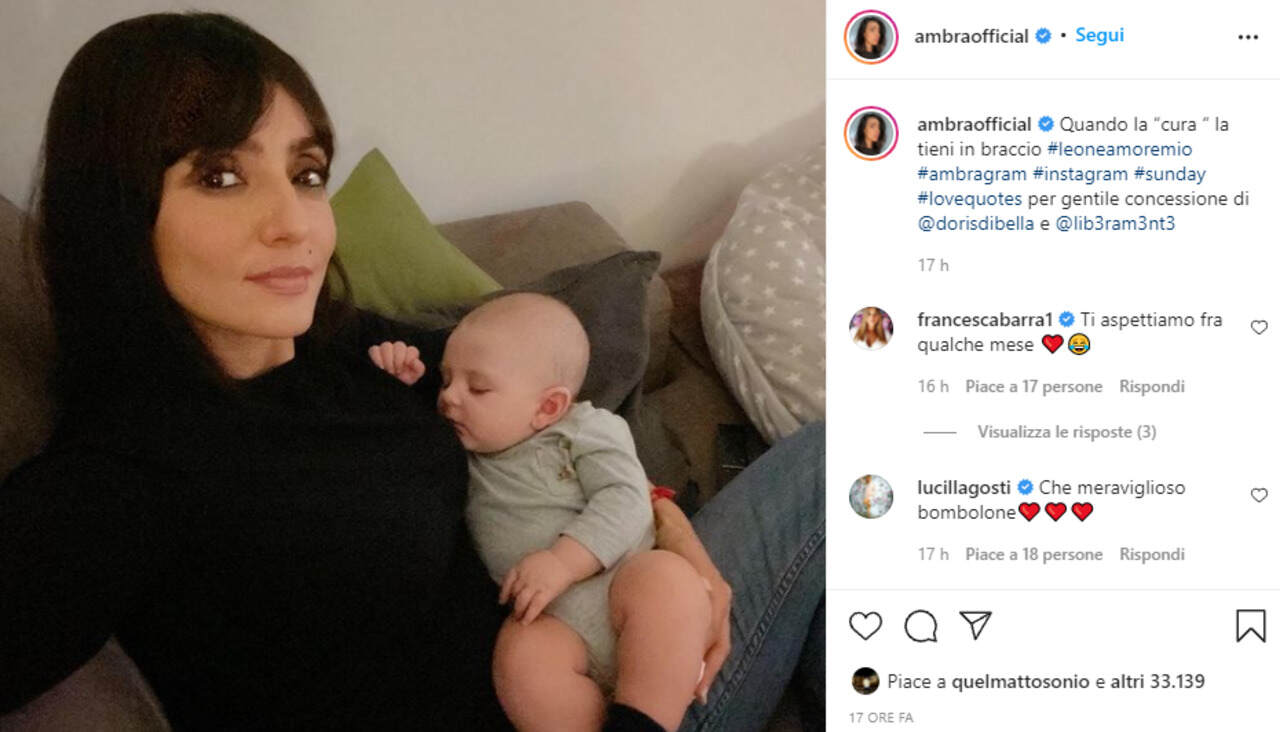 Come qualsiasi madre, anche lei comprende la gioia immensa della maternità e per questo condivide quella dell’amica Doris. Da qualche mese infatti è nato Leone, un bimbo di cui Ambra è innamorata e che ha già mostrato ai propri fan su Instagram. Nell’ultimo post l’attrice si fa vedere mentre lo tiene in braccio ed a commento di quello scatto scrive: “Quando la ‘cura’ la tieni in braccio”.