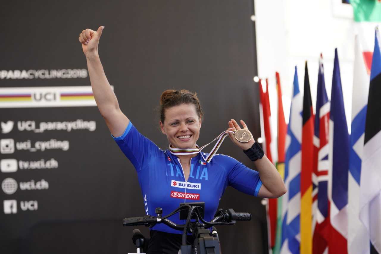Lo sport è sempre stato nel dna di Ana Maria Vitelaru. Appassionata di trekking in montagna, per quasi un decennio ha giocato ad alti livelli a basket in carrozzina, entrando a far parte anche della nazionale italiana femminile dal 2004 al 2009. Da sempre attratta dal ciclismo, ha iniziato ad allenarsi con l’handbike assieme al team di Obiettivo3, sognando di raggiungere nuove vette sportive. E il suo sogno si è realizzato: ha già portato a casa 4 medaglie d’oro ai campionati italiani e 2 bronzi mondiali.