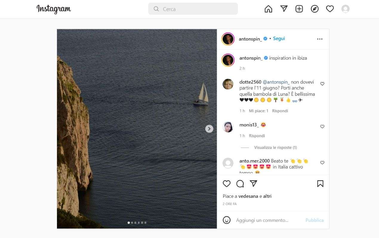 Proprio su Instagram oggi Antonino ha pubblicato dei magnifici scatti che fanno morire d’invidia tutti i suoi fan e followers. “Inspiration in ibiza”, si legge nella didascalia, e una volta tanto nelle immagini non compaiono lui o sua figlia, ma solo le irresistibili bellezze naturali della meta vacanziera prescelta.