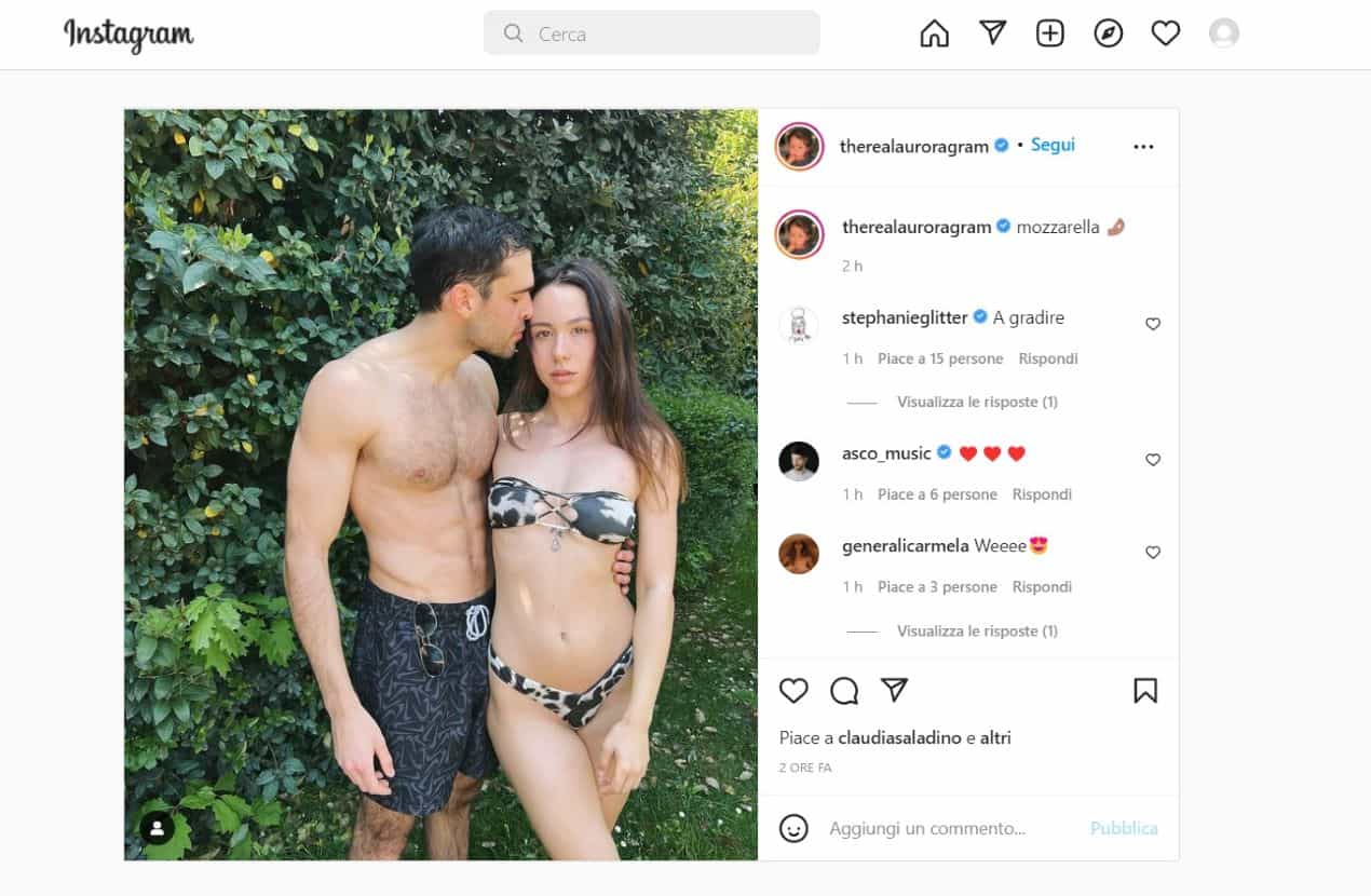 “Mozzarella 🤌🏽” scrive ironica Aurora Ramazzotti nella caption dell’ultimo scatto pubblicato sul suo profilo Instagram. La giovane influencer posa accanto al suo ragazzo, Goffredo Cerza, lui pure in costume (e con un fisico da urlo), che la prende e la bacia. Lei se ne sta immobile, lo sguardo fisso e un po’ perso nel vuoto, come una statuaria dea.