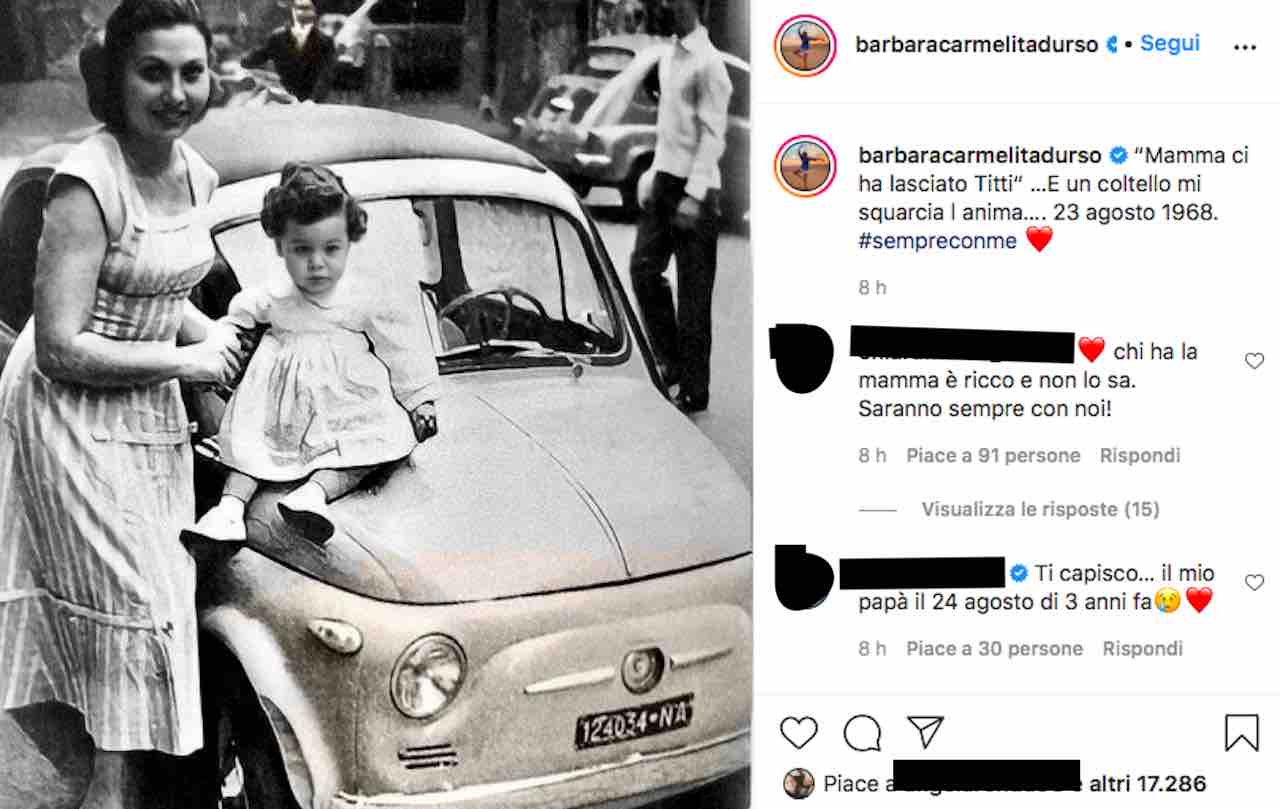 “Mamma ci ha lasciato, Titti”: così Barbara D’Urso, appena undicenne, ha scoperto della morte della madre Vera (avvenuta il 23 agosto 1968). Il tempo cura certe ferite, ma la scomparsa di un genitore può segnare la vita di un figlio tanto da portarlo alle lacrime anche cinquant’anni dopo. E’ con grande dolore che Barbara D’Urso oggi ha voluto ricordare la sua mamma, pubblicando sul suo profilo di Instagram una vecchia fotografia in bianco e nero di lei da piccola abbracciata alla signora Vera.