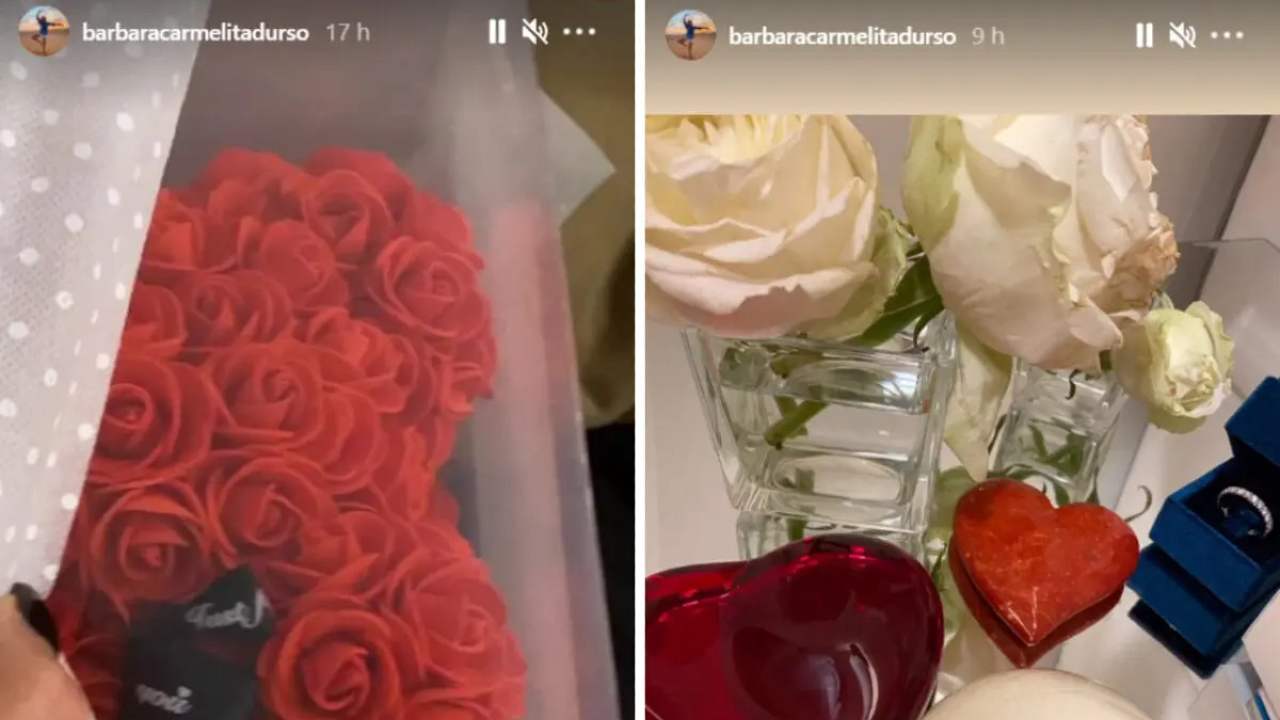 Tra le storie pubblicate nel giorno del suo compleanno dalla conduttrice Mediaset, quelle che più hanno fatto chiacchierare sono quelle dei regali. Rose rosse, candele, rose bianche…insomma, è tutto così romantico! E a calcare ancora di più quest’idea compare in un angolo una scatolina di velluto blu, aperta, con all’interno un anello con incastonati tutt’intorno dei diamanti. Un regalo del genere, sicuramente apprezzato, lascia però i fan stupiti perché Barbara D’Urso ha sempre detto di essere single e di star cercando la sua metà della mela. Che l’abbia trovata? O che ne stia nascondendo l’identità da tempo? Non lo sappiamo, ma possiamo dire che l’anello è molto fine ed elegante.