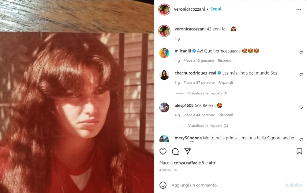 Nella didascalia si legge solo “43 anni fa”, lasciando intendere che al momento dello scatto aveva solo 15 anni. Mamma e figlia potrebbero essere scambiate tranquillamente per sorelle gemelle. Ma Veronica non è certo gelosa: adora Belu e i suoi fratelli e sui social non perde occasione per sostenerli con foto e messaggi dedicati ai loro successi. Non a caso su Instagram conta quasi 200.000 followers.
