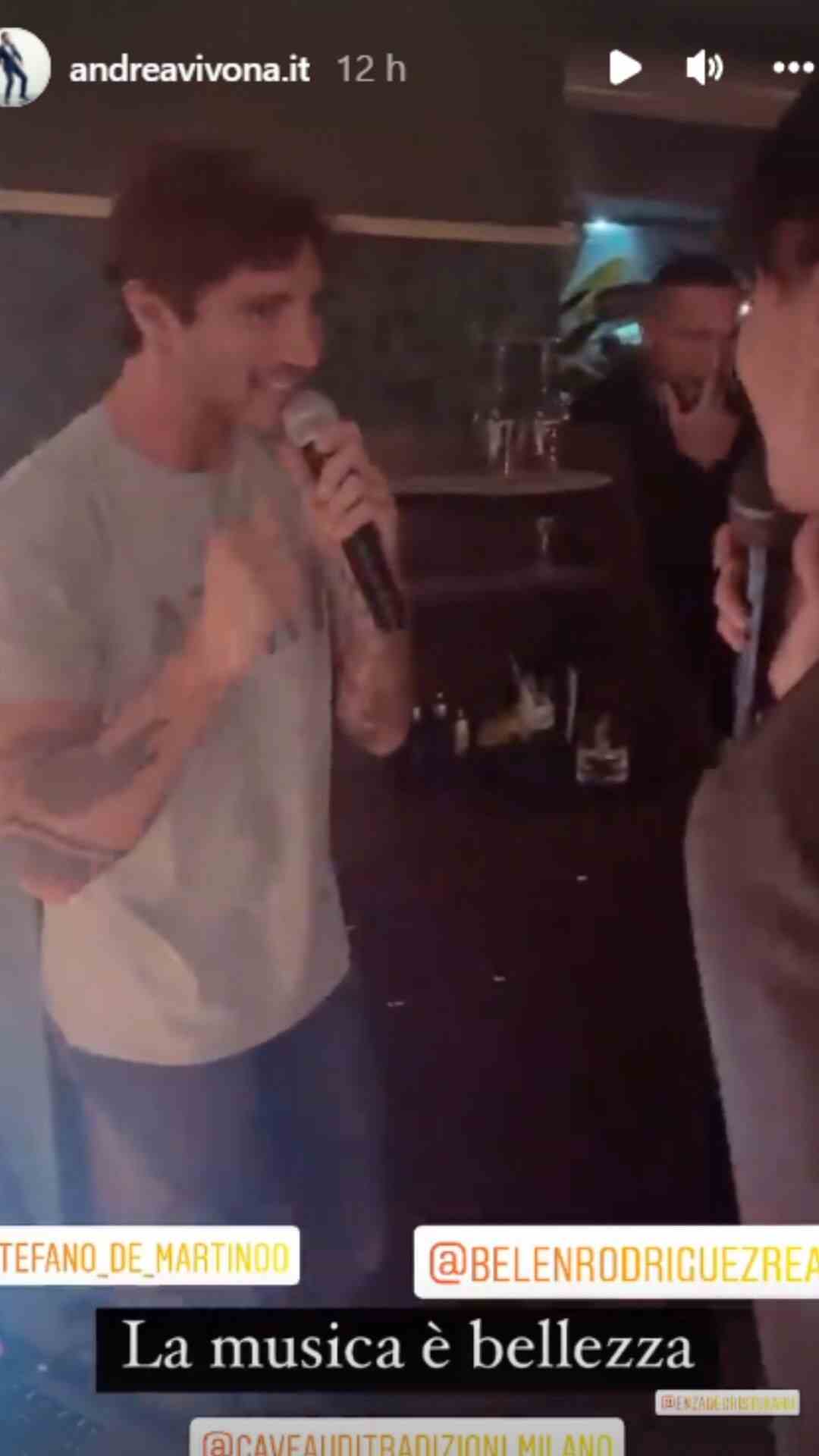 Nella serata di ieri, 30 gennaio 2022, Belen ha festeggiato con la sua combriccola il compleanno di una delle sue più care e storiche amiche, Patrizia Griffini, meglio nota come “La Pettinose”. Il party privato si è tenuto in un lussuoso ristorante milanese, alla presenza di Cecilia Rodriguez, Ignazio Moser e proprio De Martino. Ebbene, i due ex sono stati paparazzati molte volte insieme di recente e ieri, complice forse l’aria di festa e qualche bicchierino di troppo, hanno fatto faville (anche) al karaoke.