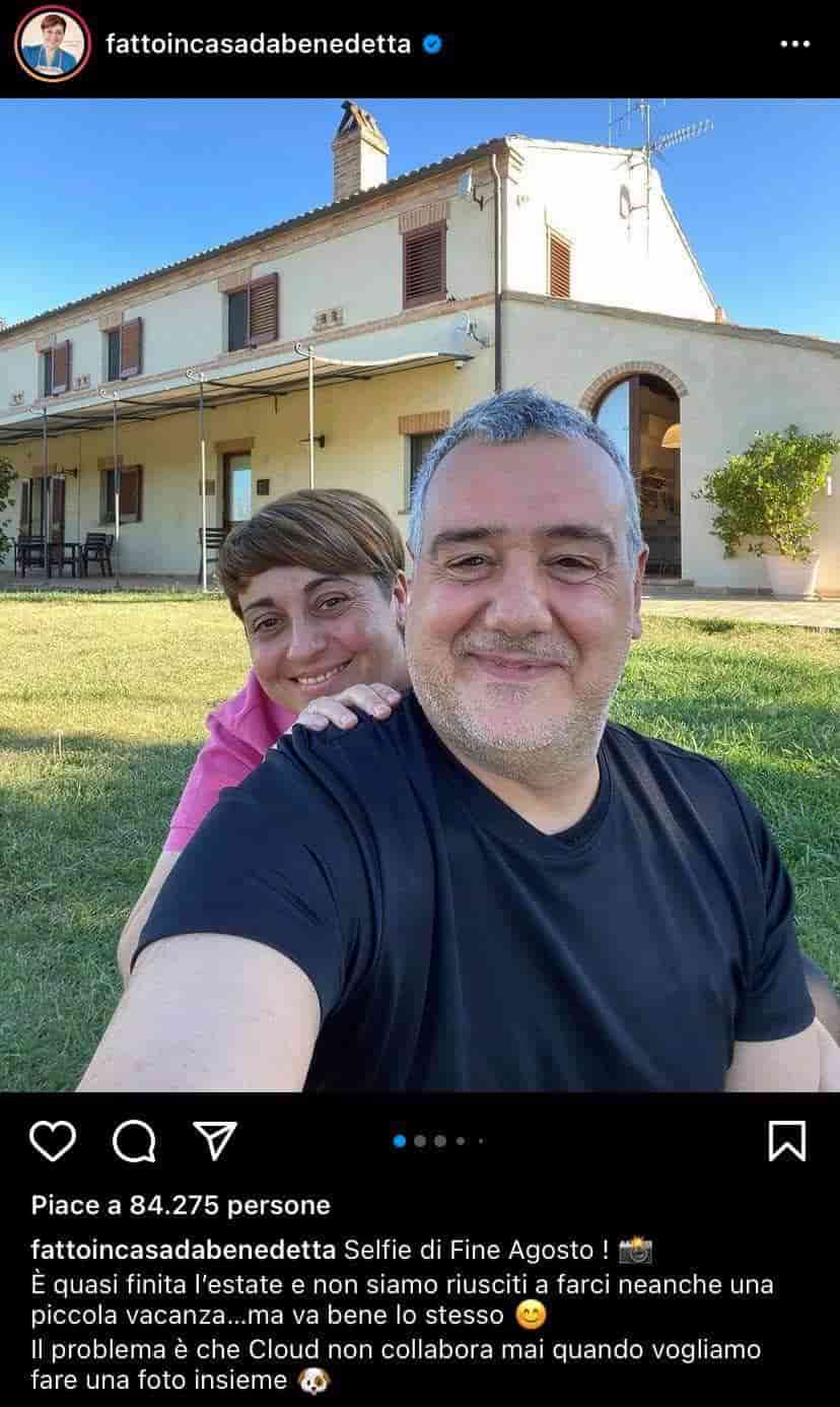 Il post pubblicato su Instagram da Benedetta Rossi ha riscosso migliaia e migliaia di like e commenti. “Selfie di fine Agosto!” ha esordito la conduttrice nella descrizione, accompagnando il testo con l’emoticon di una piccola macchina fotografica. In seguito la donna ha raccontato di aver rinunciato completamente alle vacanze per quest’anno. “È quasi finita l’estate e non siamo riusciti a farci neanche una piccola vacanza… Ma va bene lo stesso.” ha dichiarato Benedetta, la quale ha deciso di dedicare le tanto meritate ferie alla sua casa, al marito Marco, e al cagnolino Cloud. Niente rammarico però per la food blogger, la quale ha affrontato il tutto con estrema filosofia, alleggerendo il post con una battuta finale: “Il problema è che Cloud non collabora mai quando vogliamo fare una foto insieme”.