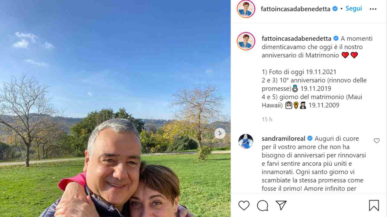 Sembra strano dunque che si possa dimenticare un evento importante come l’anniversario di matrimonio, ma pare che è proprio quello che stava accadendo ieri. Prima che fosse troppo tardi Benedetta ha pubblicato una serie di scatti che partono dal giorno del matrimonio e giungono fino al dodicesimo anniversario. in tutte si percepisce il medesimo feeling con il marito, lo stesso che i loro fan notano ogni giorno. Poco importa, dunque, se gli auguri ed il pensiero siano arrivati con qualche ora di ritardo. Marco, che di certo conosce gli impegni della moglie, avrà compreso e gradito l’omaggio anche se in giunto in ritardo.