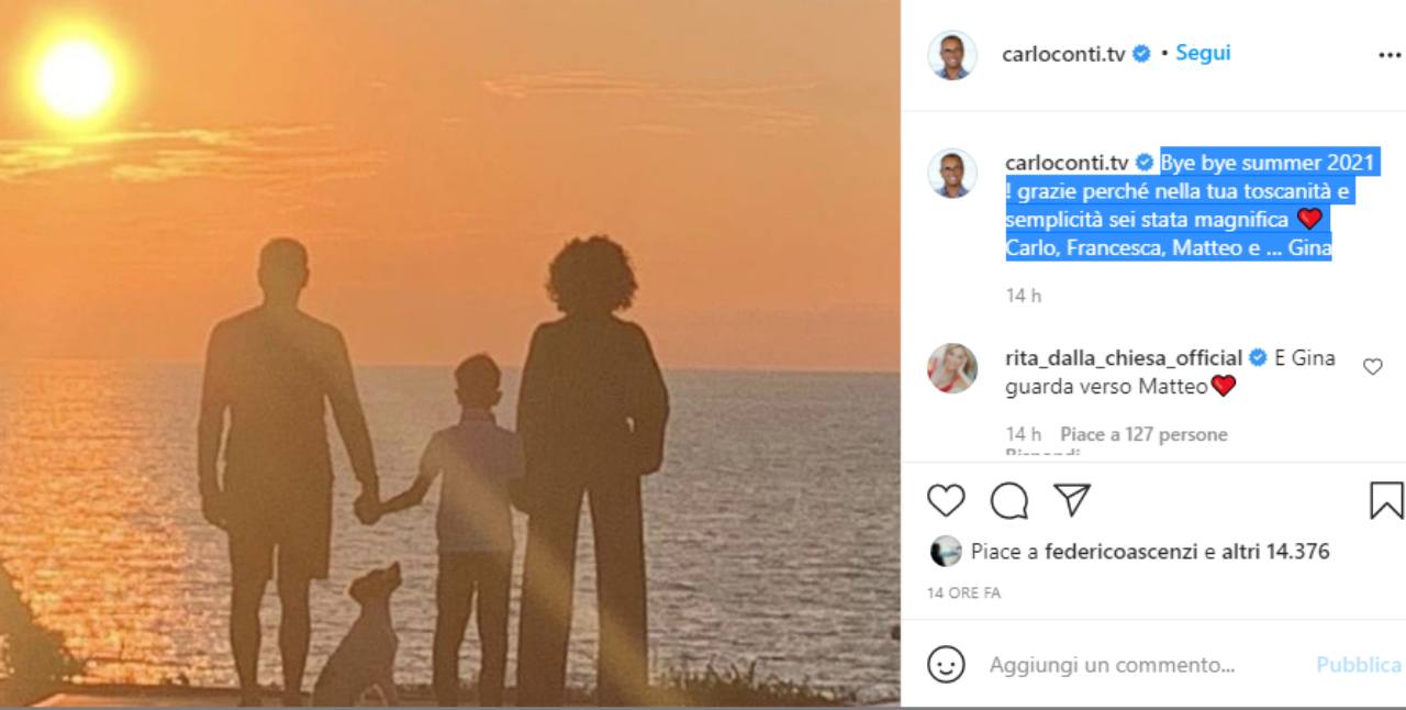 Già solo la foto rende l’idea di quanto fosse evocativo quel momento per la famiglia, ma le parole che lo accompagnano sottolineano in modo struggente questo momento di passaggio: “Bye bye summer 2021 ! grazie perché nella tua toscanità e semplicità sei stata magnifica ❤️ Carlo, Francesca, Matteo e … Gina”. Conclusa con un pizzico di nostalgia questa estate, Carlo si prepara a tornare in televisione con il ‘Tale e Quale Show’, programma atteso da milioni di fan.