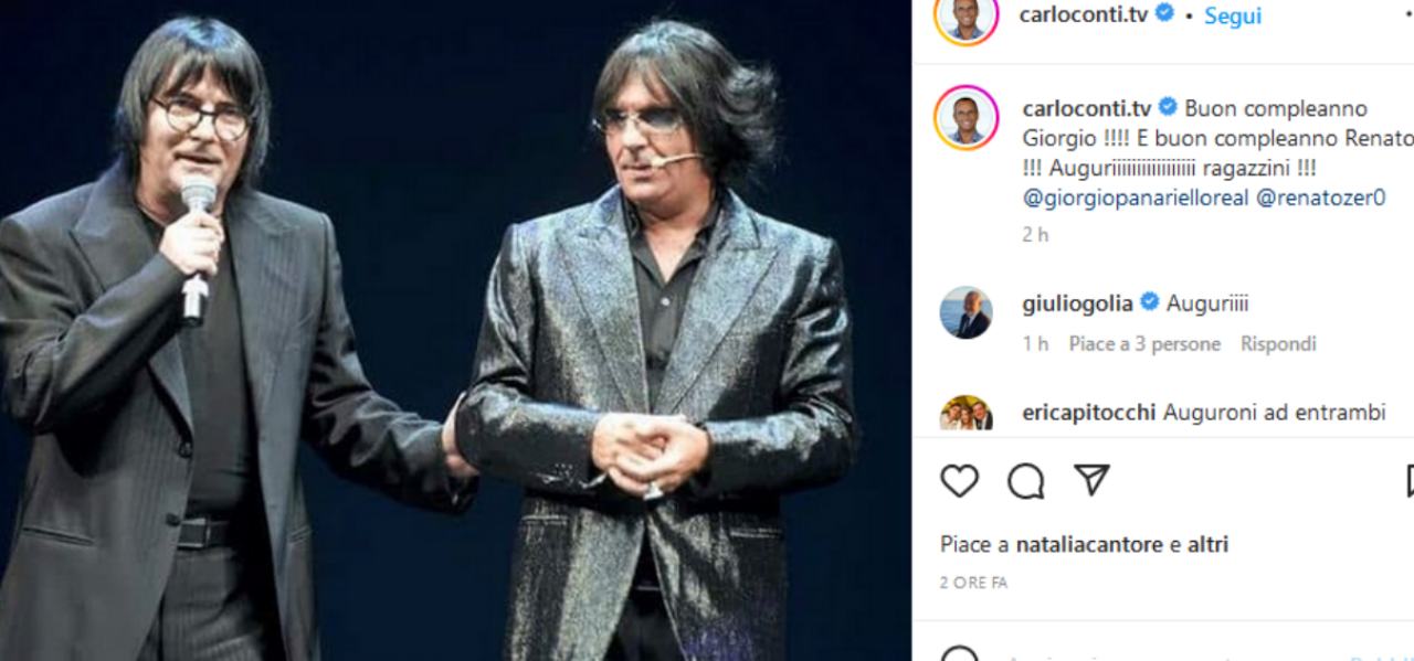 L’ennesima dimostrazione del valore enorme che Carlo attribuisce all’amicizia l’ha data questa mattina con un post dedicato a due persone importanti: Giorgio Panariello e Renato Zero. I due oggi compiono gli anni e per celebrarli Conti ha pubblicato una foto di repertorio in cui il cantante ed il comico erano sullo stesso palco e Panariello era travestito da Zero. Nel commentare la foto, Carlo scrive: “Buon compleanno Giorgio !!!! E buon compleanno Renato !!! Auguriiiiiiiiiiiiiiiii ragazzini !!!”.