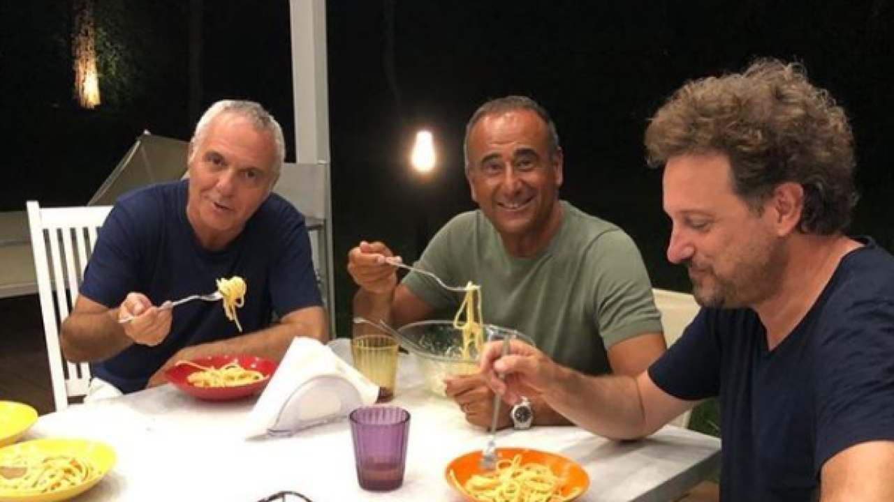In questi giorni di agosto Carlo Conti ha deciso di spendere qualche giorno delle sue ferie insieme a due dei suoi più cari e vecchi amici: Giorgio Panariello e Leonardo Pieraccioni. Il conduttore di Rai 1 ha deciso di pubblicare sul proprio profilo Instagram una foto che lo ritrae insieme ai due comici e attori mentre si mangiano un gustoso piatto di pasta. I tre sono amici da davvero moltissimi anni e hanno vissuto così tante esperienze insieme che uno “Spaghettino di mezzanotte” può essere forse visto come un momento di pura convivialità. Un apostrofo rosa messo nella frase “Amici d’una vita”.