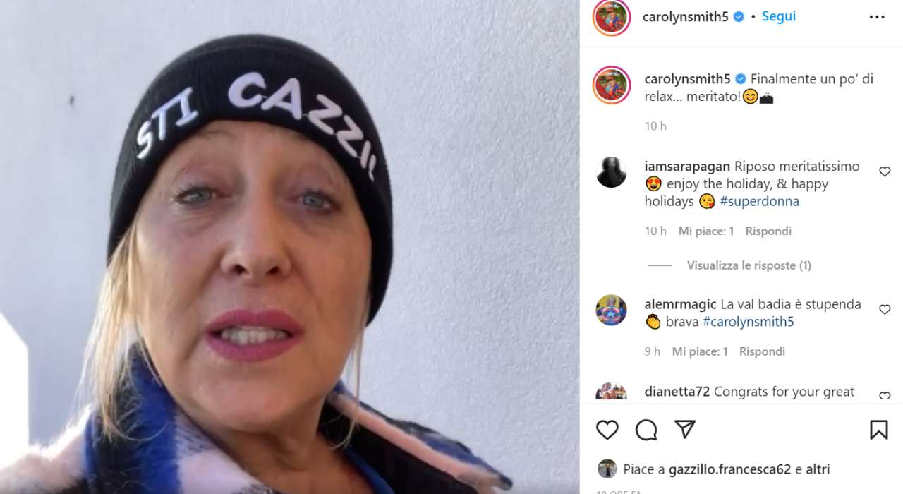 La presidente di giuria era dunque abbastanza d’accordo con l’esito finale della trasmissione. Ieri Carolyn ha aggiornato i fan su quale sia stato il suo impegno immediatamente dopo la finale di Ballando. Insieme al compagno, al termine della registrazione, si è messa in macchina e si è trasferita in una località di montagna per passare le festività natalizie.