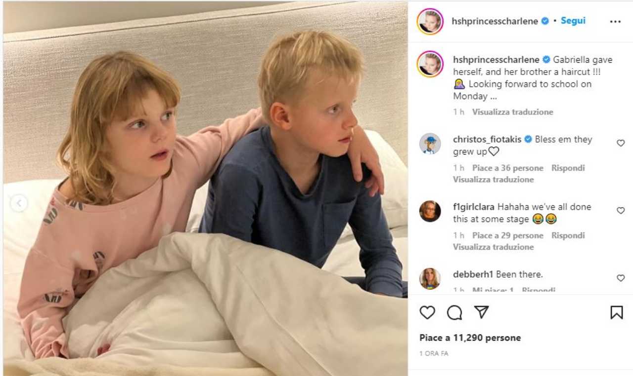 “Gabriella ha fatto a lei e suo fratello un nuovo taglio di capelli! Non vedo l’ora che inizi la scuola lunedì” scrive Charlene mentre mostra i discutibli tagli di capelli che sfoggiano i loro due bambini sorridenti. Il pubblico di internet si è commosso per la tenerezza dei due bimbi e si è mostrato comprensivo nei confronti di questo particolarissimo haircut. Qualcuno sostiene che tutti ad un certo punto ad una certa età abbiamo fatto scemenze simili e che tanto i capelli ricresceranno, i momenti divertenti con i propri bambini, invece non tornernanno più!