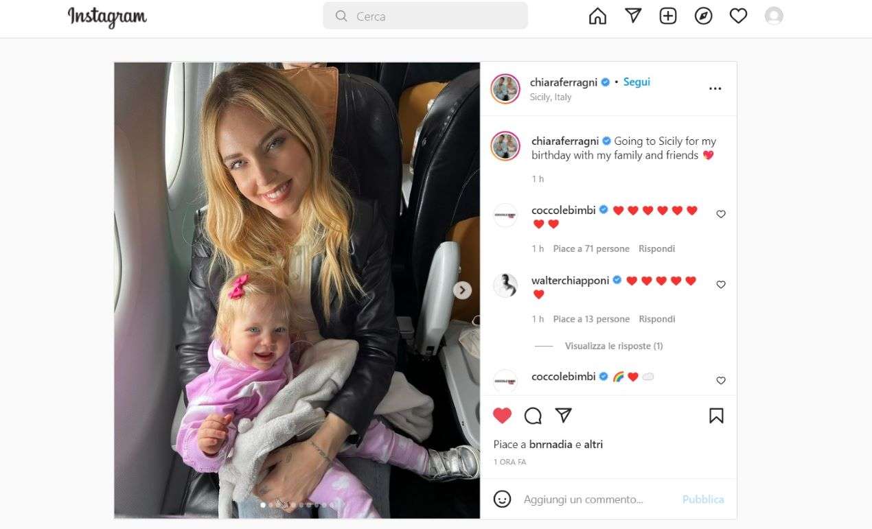 “Going to Sicily for my birthday with my family and friends 💖” scrive l’imprenditrice digitale nell’ultimo post pubblicato sul suo seguitissimo profilo Instagram, con una serie di scatti che la immortalano serena e felice accanto alla sua famiglia.