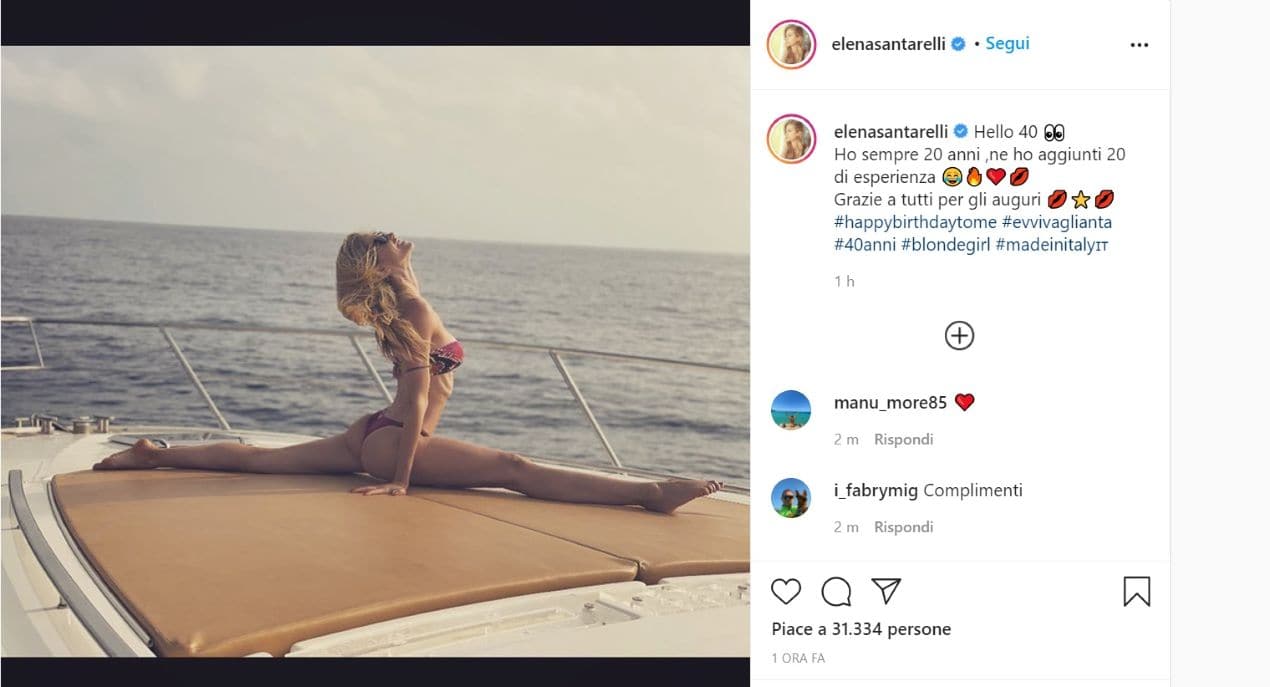 “Hello 40 👀 – scrive Elena Santarelli in un post appena pubblicato sul suo seguitissimo profilo Instagram -. Ho sempre 20 anni, ne ho aggiunti 20 di esperienza 😂🔥❤️💋