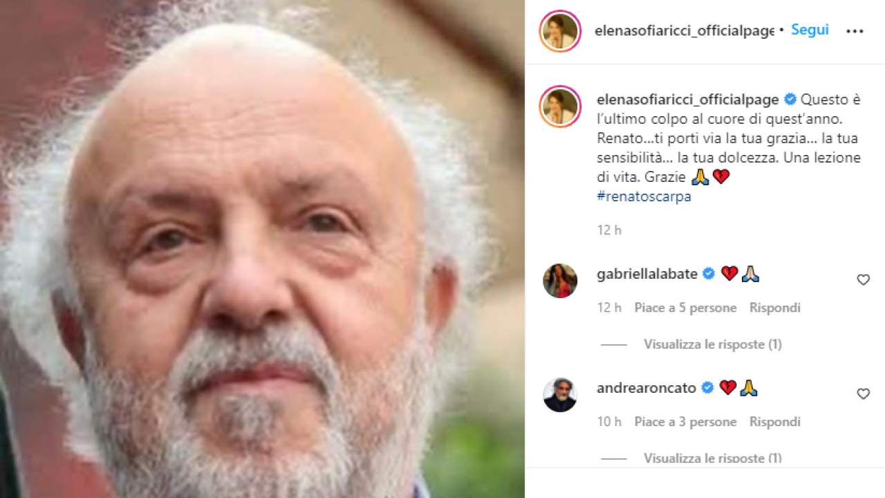Nel mondo dello spettacolo italiano sono in molti che hanno voluto dedicare almeno un momento del loro tempo a ricordare questo grande artista italiano. Tra di essi, anche Elena Sofia Ricci ha voluto scrivere qualche riga in sua memoria. L’attrice, che fino a qualche giorno fa era in tournée in giro per i teatri italiani, ha condiviso una foto di Renato Scarpa sul proprio profilo Instagram. Poche parole, le sue, ma decisamente molto sentite. “Questo è l’ultimo colpo al cuore di quest’anno. Renato… ti porti via la tua grazia… la tua sensibilità… la tua dolcezza. Una lezione di vita. Grazie“.