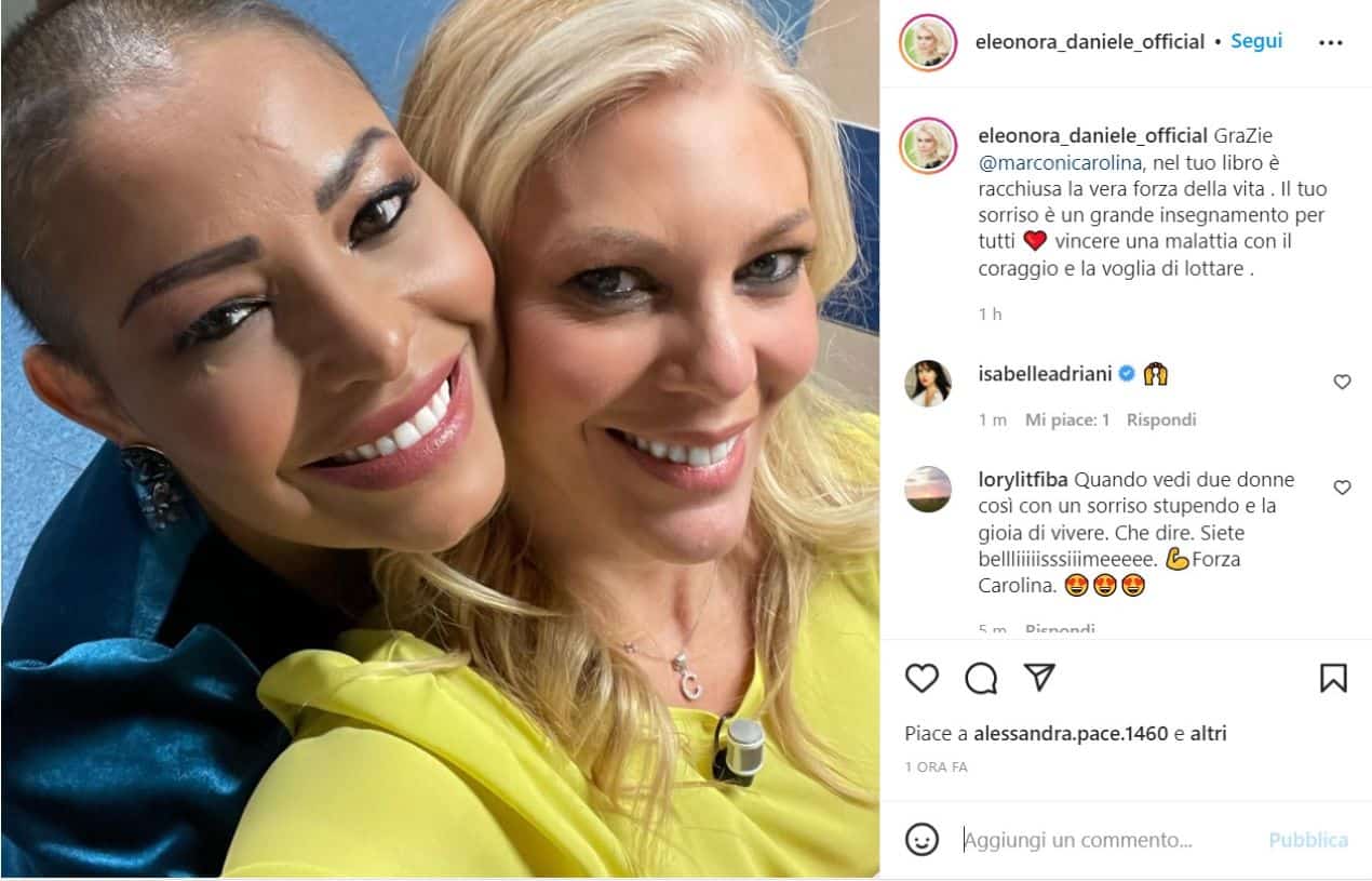 Una storia che ha particolarmente colpito e commosso la conduttrice Eleonora Daniele, la quale ha voluto scriverne anche in un post appena pubblicato sul suo profilo Instagram: “GraZie @marconicarolina, nel tuo libro è racchiusa la vera forza della vita . Il tuo sorriso è un grande insegnamento per tutti ❤️ vincere una malattia con il coraggio e la voglia di lottare”.