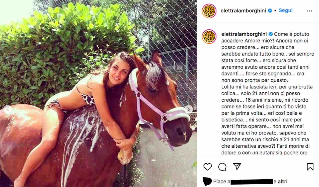 L’anno scorso la Lamborghini ha deciso di sfogare il suo dolore scrivendo un post sui suoi social dedicato proprio alla morte della sua adorata Lolita. “Come è potuto accadere amore mio? Ancora non ci posso credere. Ero sicura che sarebbe andato tutto bene, sei sempre stata cosí forte. Ero sicura che avremmo avuto ancora cosí tanti anni davanti, non sono ancora pronta per questo”: così inizia il lunghissimo messaggio con cui Elettra saluta per l’ultima volta la sua adorata cavalla.