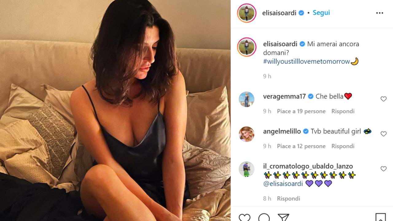 L’ultimo post Instagram ha fatto temere ai fan che qualcosa possa essere andato storto anche in amore. Elisa si mostra con una camicia da notte sul letto, lo sguardo rivolto verso il basso e l’espressione pensierosa. A commento dello scatto scrive: “Mi amerai ancora domani?”. Possibile che sia successo qualcosa con il fidanzato? Magari è semplicemente una riflessione slegata da un contesto, ma i fan si chiedono se per la conduttrice vada ancora tutto bene.