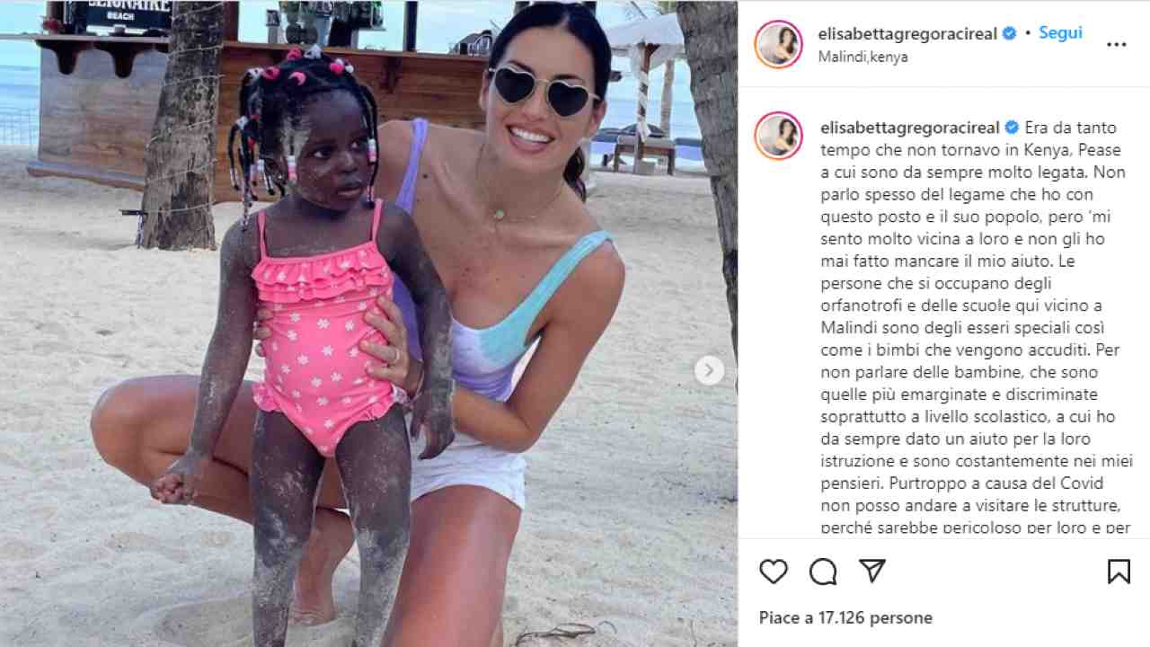 La showgirl ex moglie di Flavio Briatore ha condiviso sul proprio profilo Instagram una serie di foto che la ritraggono insieme a diversi bambini kenioti. Vediamo ragazzini sorridenti, sporchi di sabbia dopo aver giocato e, in mezzo a loro, una Elisabetta Gregoraci altrettanto raggiante. Questa, come lei stessa ha affermato, non era la prima volta che andava in Kenya, paese cui è da sempre molto legata. Tuttavia era passato già parecchio tempo dall’ultima volta cui era stata lì ma, nonostante ciò, il legame creato con quelle persone e quei posti non si è mai dissipato.