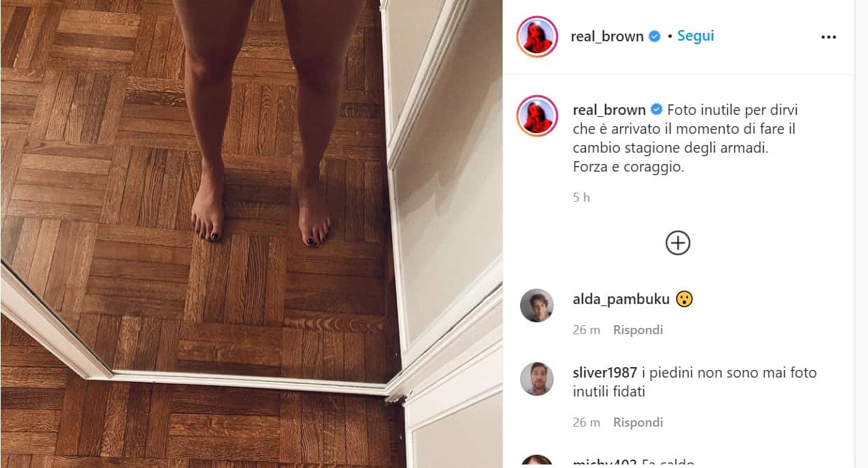 Lo scatto in questione riprende i piedi e le gambe di Emma Marrone, per la gioia dei feticisti del web (e non solo). Non sappiamo in realtà se la cantante sia completamente nuda oppure no, ma è proprio questo probabilmente rende la foto ancora più piccante e sensuale. Non a caso il post nel giro di poche ore ha raggiunto decina di migliaia di “mi piace”.