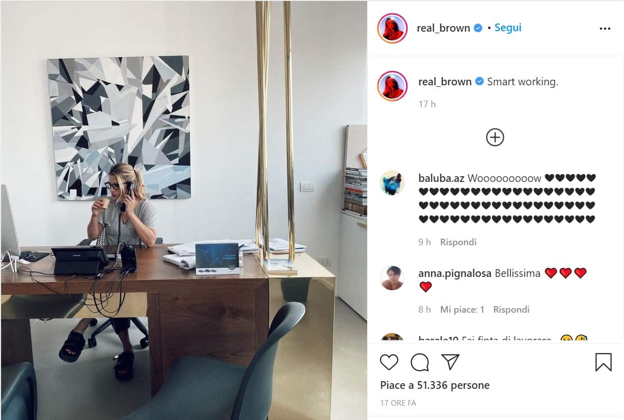 “Smart working”, recita la didascalia sotto al post che ha raggiunto in un batter d’occhio decine di migliaia di like. “Bellissima”, “Che chic”, “Stupenda”, “Che stile”, “Unica”, “Che meraviglia”: sono solo alcuni dei commenti che si leggono in calce al messaggio condiviso dalla Emma Nazionale sulla sua seguitissima pagina Instagram.