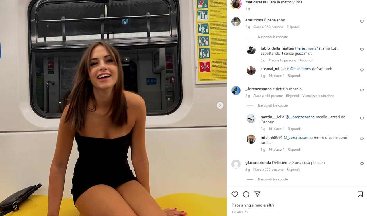 Non si capisce, insomma, per quale ragione nei commenti c’è gente che scrive frasi come: “Solo 18 ne dimostra 30 se metti queste foto e perché ti vuoi far commentare n c’e altra spiegazione”, oppure: “I like e commenti son più importanti al giorno di oggi.. Io sarò di un’altro pianeta ma mia FIGLIA a 18 anni non la manderei in giro così alla Sera in Metro’ perché Non So Se Torna A Casa…”.