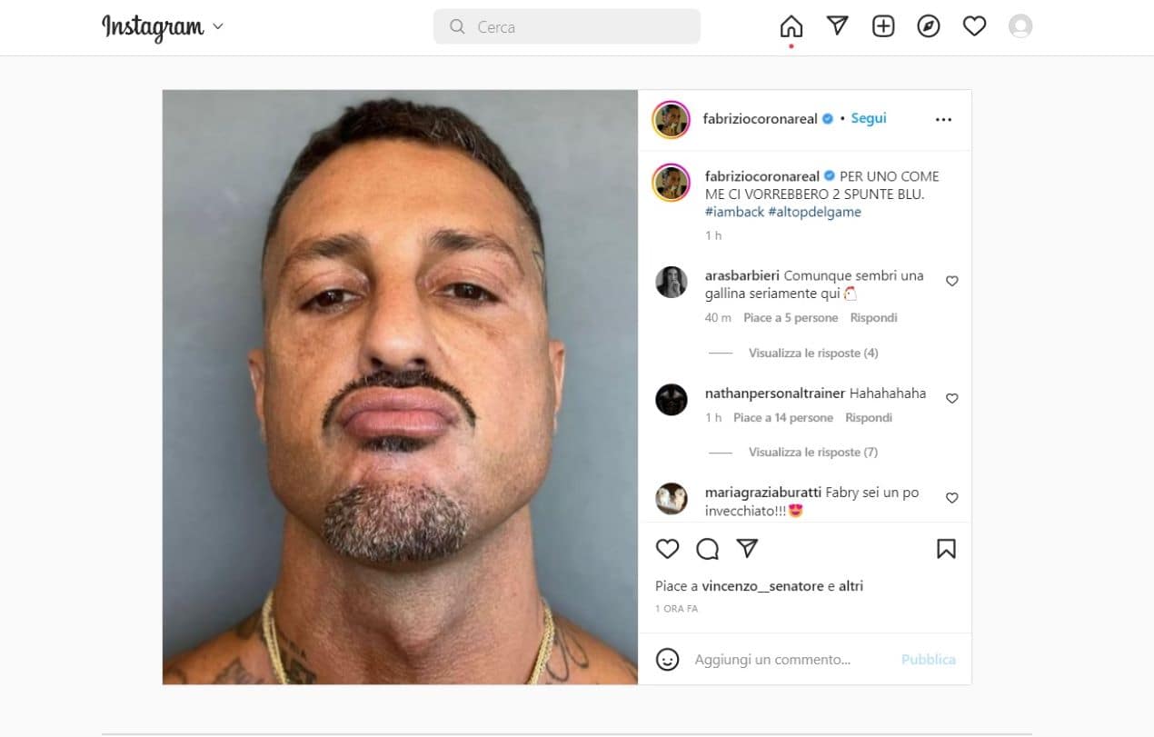 Fabrizio Corona “schedato” su Instagram