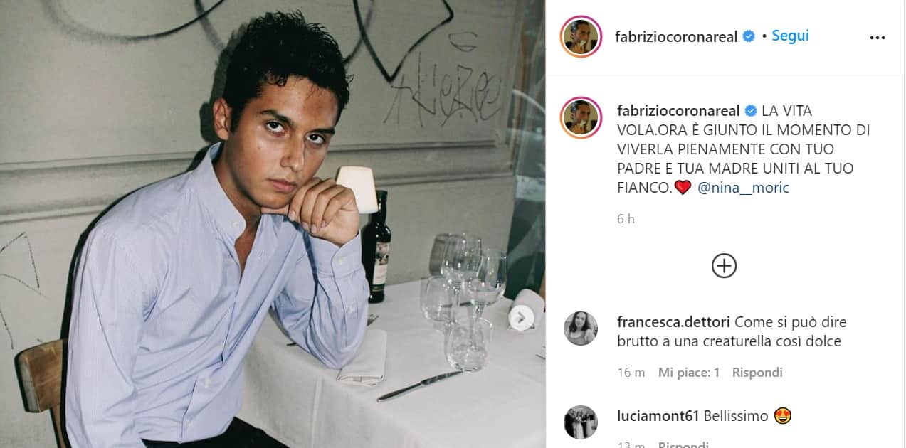 “LA VITA VOLA.ORA È GIUNTO IL MOMENTO DI VIVERLA PIENAMENTE CON TUO PADRE E TUA MADRE UNITI AL TUO FIANCO.❤️ @nina__moric“: così si legge nell’ultimo post pubblicato da Fabrizio Corona sul suo profilo Instagram, con in primo piano la foto dell’amato pargolo.