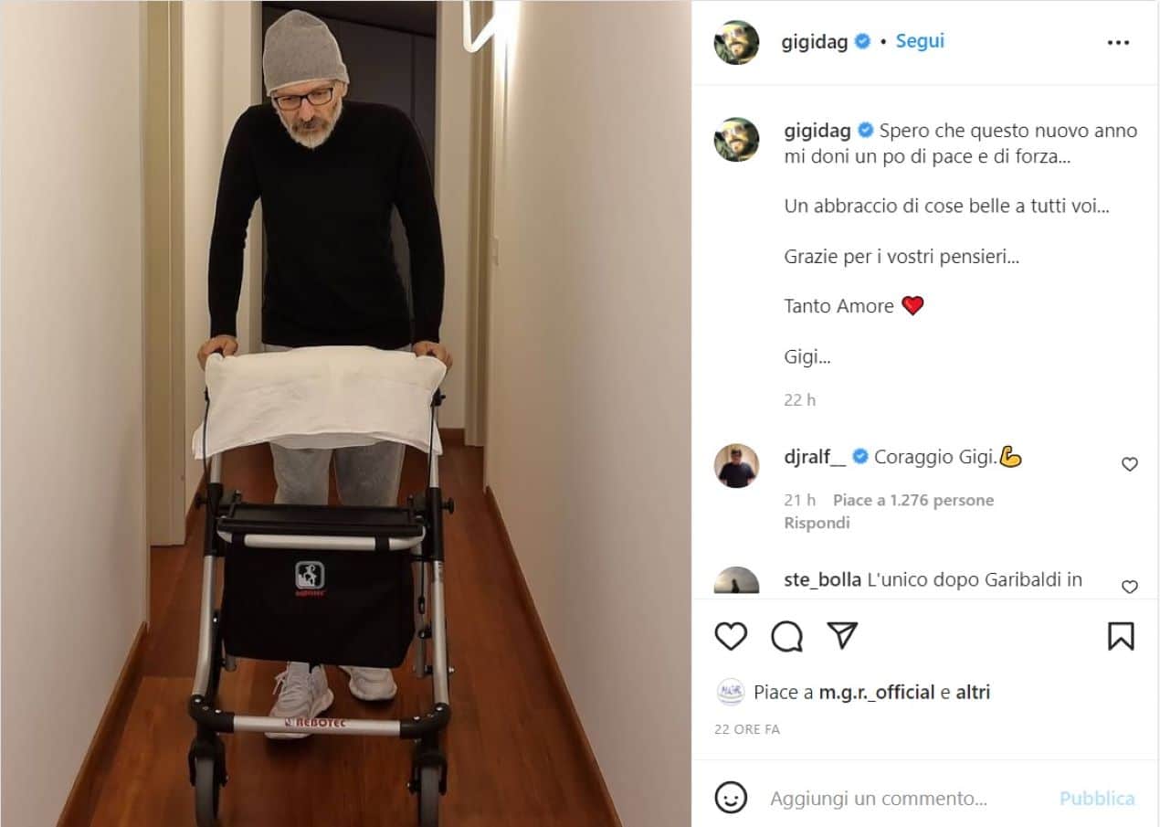Il dj Gigi D’Agostino è purtroppo gravemente malato: la foto che ha appena postato sul suo profilo Instagram – uno scatto con il deambulatore – parla da sé. Ma lo spirito combattivo e la carica di energia sono intatti: il noto personaggio del mondo della musica spera in un po’ di pace e forza per andare avanti.