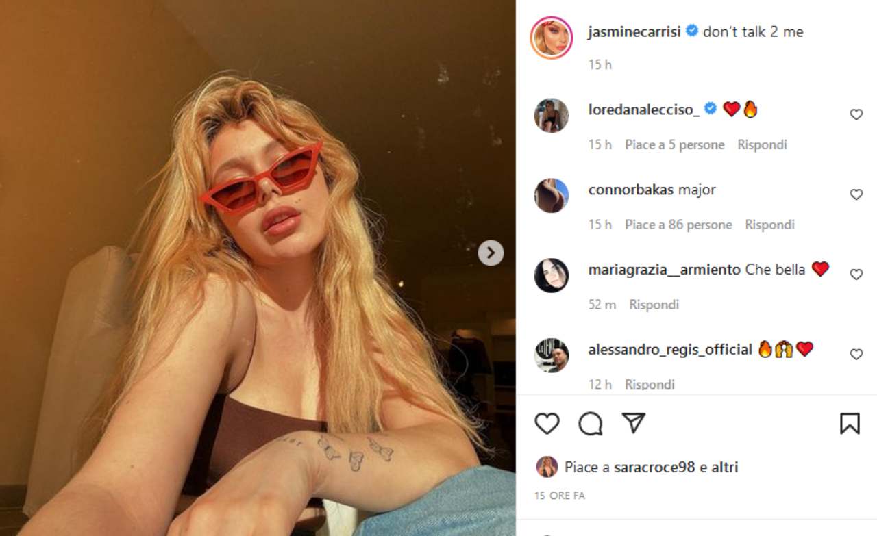 A chi non ha gradito le sue ultime apparizioni televisive ed in generale ai detrattori Jasmine ha risposto qualche ora fa con un post su Instagram in cui si mostra in una posa da Femme Fatale ed in cui scrive: “Don’t Talk 2 me” (citazione della canzone di Lady Gaga?), come a voler dire lasciami in pace, io vado avanti per la mia strada. Il post ha ricevuto il solito filotto di complimenti, con solo poche persone che hanno utilizzato quello spazio per criticarla senza ragione.