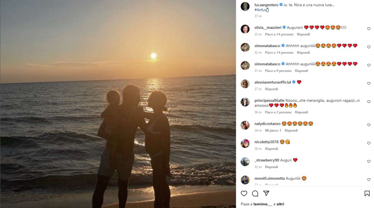 Argentero si trova così bene con la moglie e la figlia da pensare che tra qualche anno potrebbe abbandonare la carriera per dedicarsi maggiormente alla famiglia, allargarla e godersela a tempo pieno. Un sentimento bellissimo che viene espresso anche dall’ultimo post Instagram dell’attore: una foto al tramonto in cui tiene in braccio la figlia e si accinge a dare un bacio alla moglie. Immagine bellissima che è impreziosita dalle parole con le quali ha deciso di accompagnarle: “Io, te, Nina e una nuova luce…”.