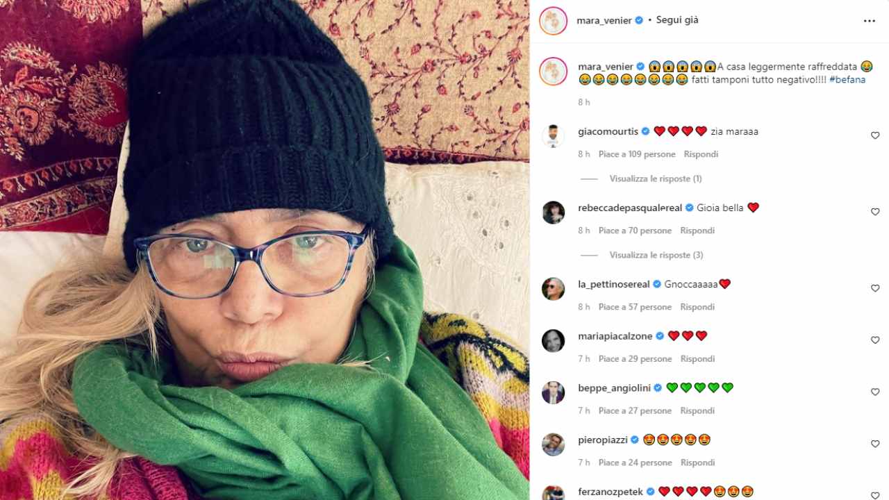 Mancano due giorni alla prossima puntata di Domenica In, quella che anticipa il Festival di Sanremo condotto da Amadeus (il terzo per il bravo conduttore) e Mara Venier fa preoccupare i suoi fan con un post che a prima vista, di questi tempi richiama un problema purtroppo ben noto a tutti. Nella foto pubblicata dalla conduttrice veneta si vede Mara con indosso un cappellino di lana ed una sciarpa, la sua espressione mostra uno stato di salute non ottimale e tutti pensano subito al possibile contagio.