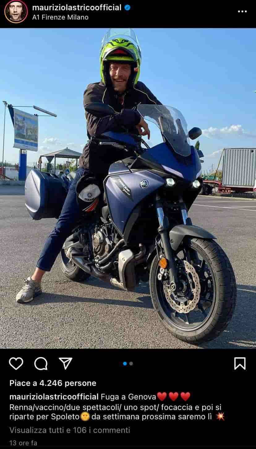Ha suscitato immediatamente centinaia e centinaia di reazioni la foto pubblicata da Lastrico qualche ora fa sui social network. Lo scatto raffigura l’attore a cavallo della sua moto blu, sorridente più che mai. I fan si sono mostrati entusiasti di fronte alla breve fuga di Maurizio e alla sua contagiosa allegria. Molti utenti gli hanno augurato buon viaggio, mentre altri si sono complimentati per la moto o per l’eccentrico casco verde fluo, decisamente troppo appariscente per restare inosservato.