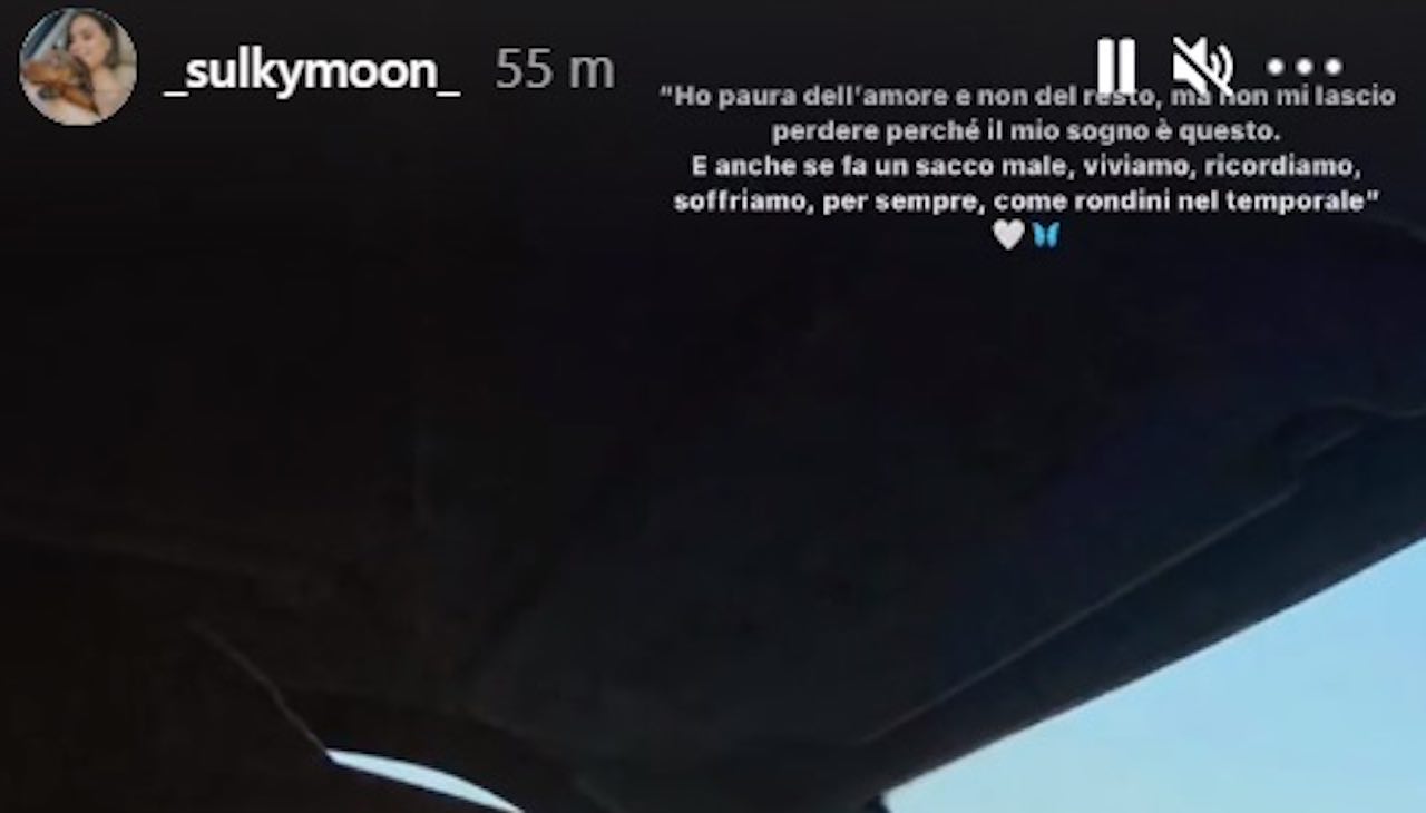 “Ho paura dell’amore non del resto, ma non mi lascio perdere perché il mio sogno è questo anche se fa un sacco male. Viviamo, ricordiamo, soffriamo, per sempre come rondini nel temporale” recita il nuovo messaggio che Luna ha lasciato sui social per il fidanzato. L’ultima frase è un omaggio proprio ad una canzone di Merlo, Per sempre come rondini nel temporale.