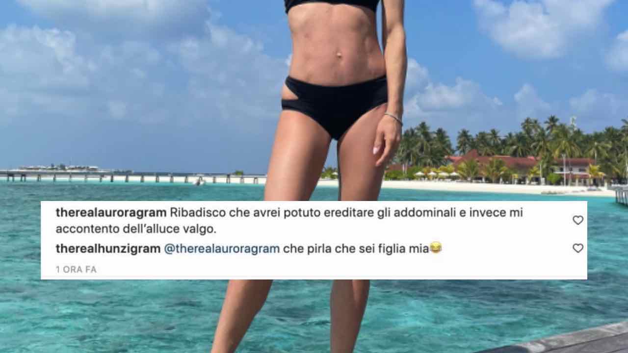 Questa volta ad attirare il pubblico non è tanto la foto in bikini di Michelle Hunziker, quanto i commenti di Aurora sotto il post: “Che pirla”.