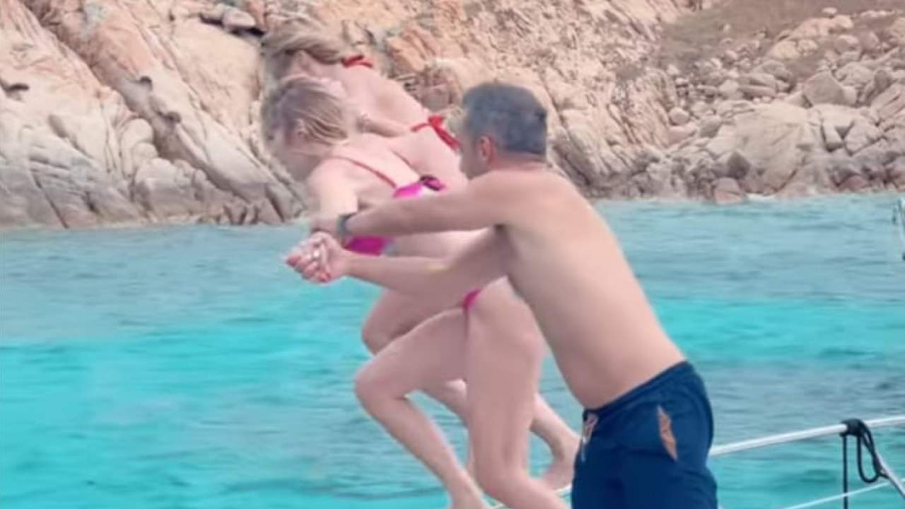 Un po’ vacanza, un po’ viaggio di lavoro tra i diversi shooting: in questi giorni Ilary Blasi, Michelle Hunziker, Francesco Totti e Nicola Savino si sono ritrovati tutti insieme in Sardegna. Tra le acque smeraldine della terra dei Nuraghe, il sole, il vento e la natura incontaminata, è assolutamente il posto perfetto per ricaricare le energie. Infatti, guardando le storie di Michelle Hunziker, si vede come il gruppo si stia divertendo a suon di tuffi. Il tutto condito da un verace Francesco Totti lievemente scettico delle capacità della moglie di lanciarsi in acqua dalla barca, tanto da dire: “Prima le vecchie […] Guarda ma non è capace Ilary eh”. Ma lei, giustamente, gli ha dimostrato come si sbagliasse e si è tuffata insieme alla sua amica Hunziker.