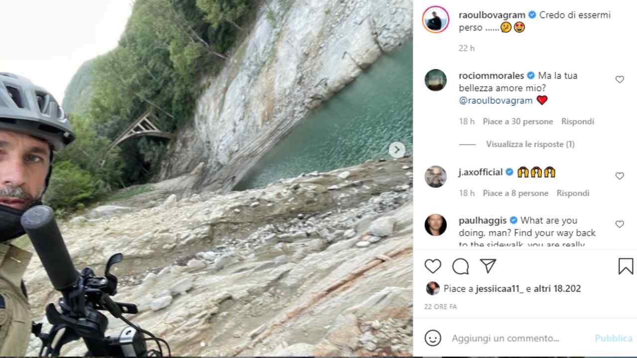 Raoul Bova mostra ai suoi fa l’incantevole luogo montano in cui si trova, ma rivela anche che non ha idea di dove si trovi.
