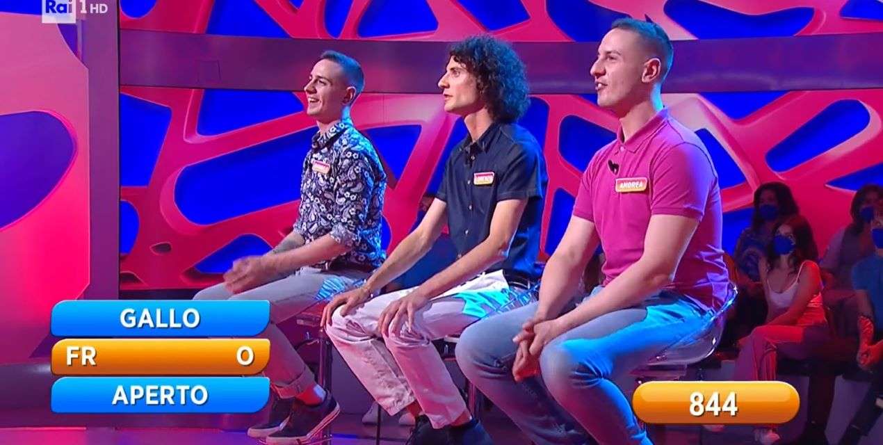 Daniele, Lorenzo e Andrea sono così riusciti a difendere alla grande il loro titolo di campioni, arrivando all’ultimo step del gioco finale con un bottino di 3.407 euro (ma prima di acquistare il terzo elemento erano quasi 7.000). Da ‘MADRE’ e ‘LUNA’, con ‘SO_____A’ come base della parola, hanno tentato come risposta ‘SORELLA’ e… ci hanno azzeccato. Il conduttore Marco Liorni è stato ben felice di annunciare la meritata vittoria! Una bella rivincita, quindi, per loro, dopo la disfatta di ieri sera.