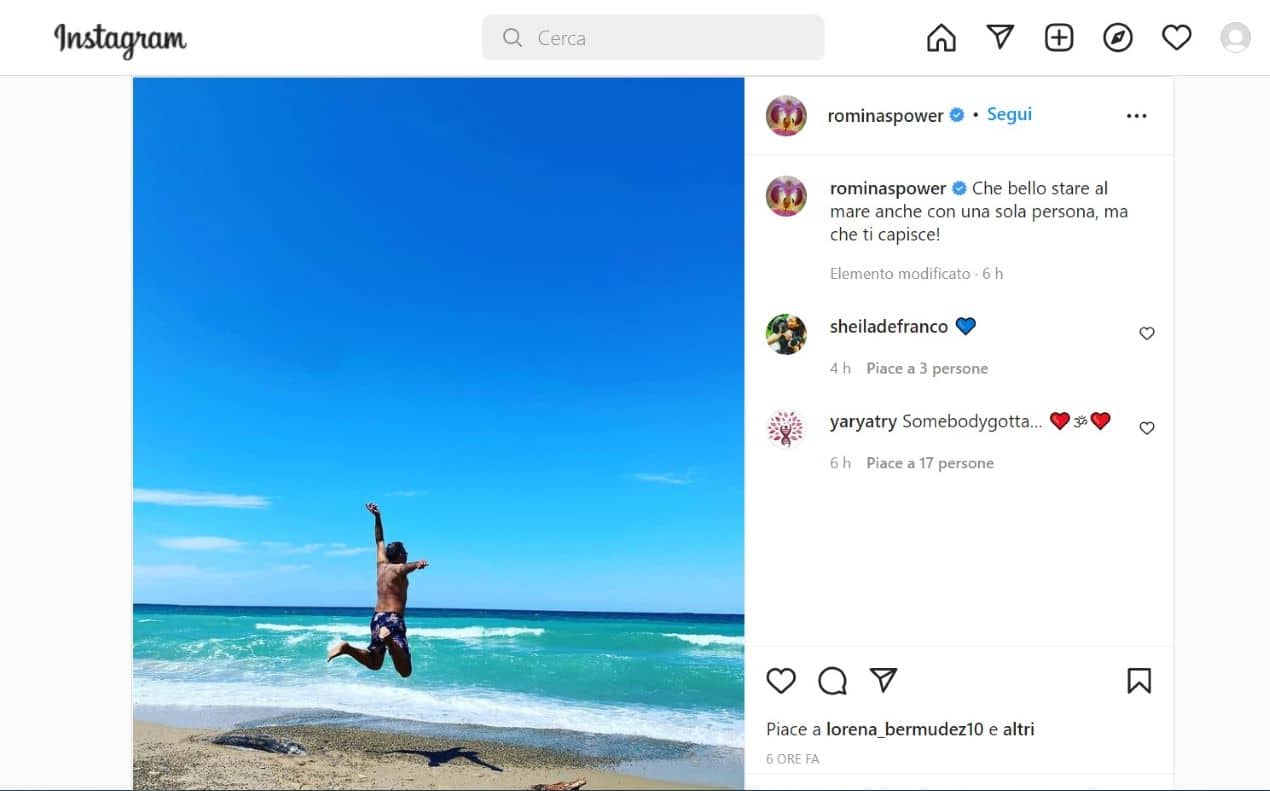 Alzi la mano chi non sogna, in questi giorni di caldo opprimente e clima vacanziero, una parentesi in spiaggia, tra tuffi, sole, passeggiate in spiaggia, in un giusto equilibrio tra divertimenti e relax. Romina Power ha avuto questa fortuna, e non ha mancato di condividerla con i suoi fan su Instagram.
