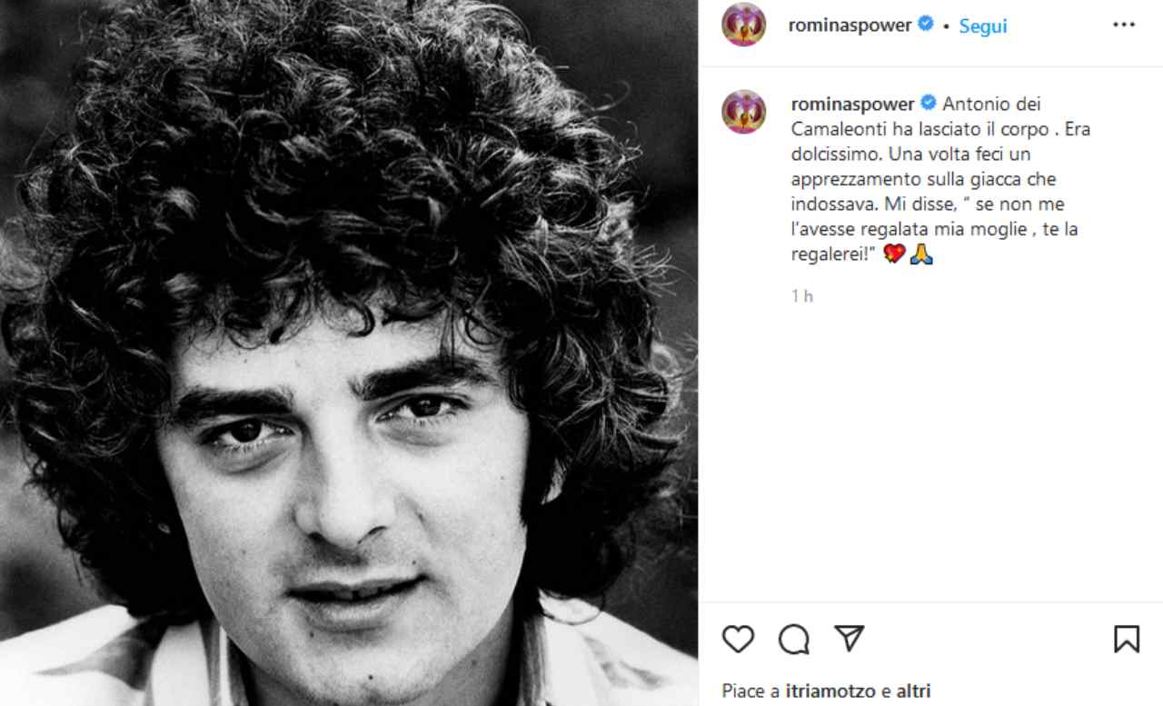 Romina da collega aveva avuto modo di conoscerlo bene e di passare insieme a lui diverse serate. Appresa la notizia della morte, però, la Power ha ricordato in particolare un momento di condivisione che aveva avuto con lui al termine di un concerto. Lei lo aveva raggiunto a fine esibizione per fargli i complimenti e nello stesso tempo gli aveva fatto un complimento anche per la giacca che indossava.