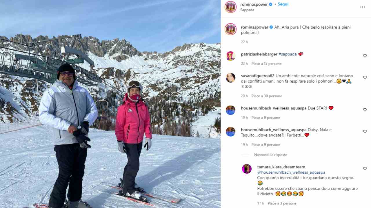 Per distendersi dallo stress del periodo, Romina si è recata nella località turistica di Sappada, paesino montano che si trova nei pressi di Udine, in Friuli. La tranquillità della montagna, la cui bellezza è resa maestosa dalla neve e dal ghiaccio, le ha fatto guadagnare momenti di assoluta serenità e felicità. Sappiamo inoltre che Romina è amante della natura e degli animali e che in luoghi del genere si trova particolarmente a suo agio.