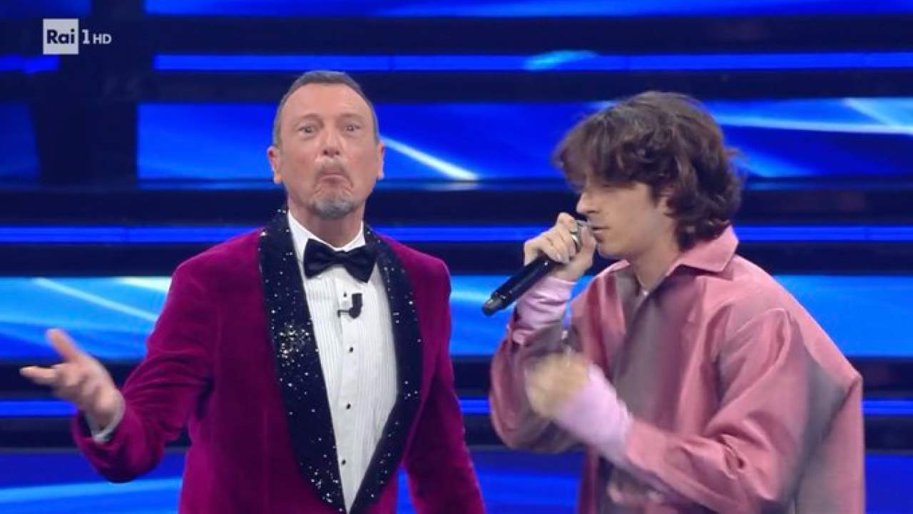 Il primo cantante ad esibirsi in questa seconda serata della settantaduesima edizione del Festival di Sanremo è stato Sangiovanni. Il giovanissimo vincitore dell’ultima edizione di Amici apre con il botto, riuscendo persino a lasciare Amadeus senza parole.