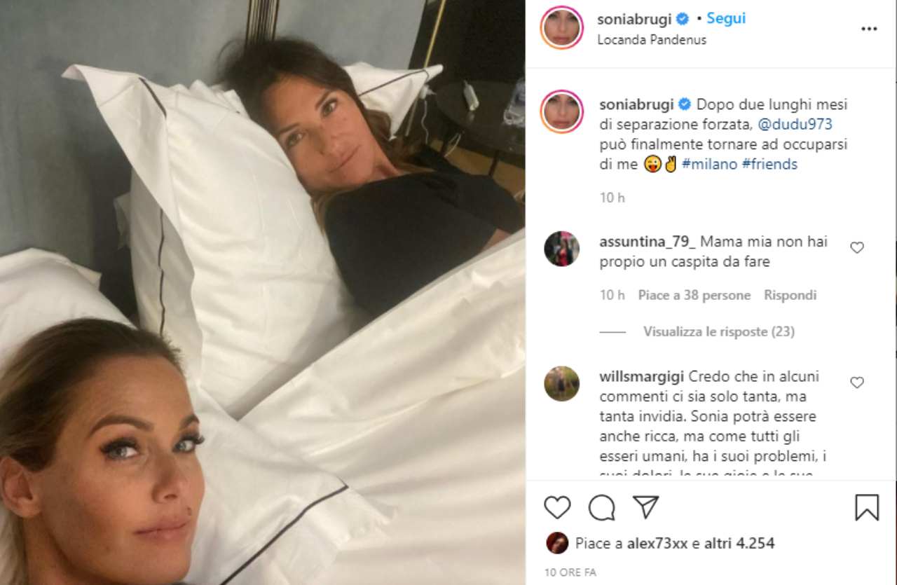 Il post è per Sonia solo un modo per manifestare la propria gioia nell’aver rivisto e passato del tempo con l’amica: “Dopo due lunghi mesi di separazione forzata, @dudu973 può finalmente tornare ad occuparsi di me 😜✌️ #milano #friends”. Insomma nulla che possa dare fastidio o che possa creare malumori, eppure c’è chi commenta con astio anche questa foto: “Mama mia non hai propio un caspita da fare”, oppure “A me rimani antipatica qualsiasi cosa tu faccia ..”.