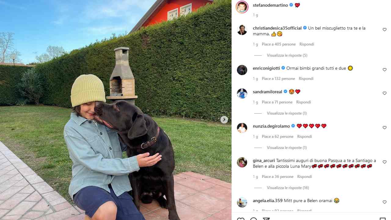 Stefano De Martino ha passato il giorno di Pasqua in famiglia, insieme al figlio Santiago, all’ex moglie Belen e alla piccola Luna Marì.
