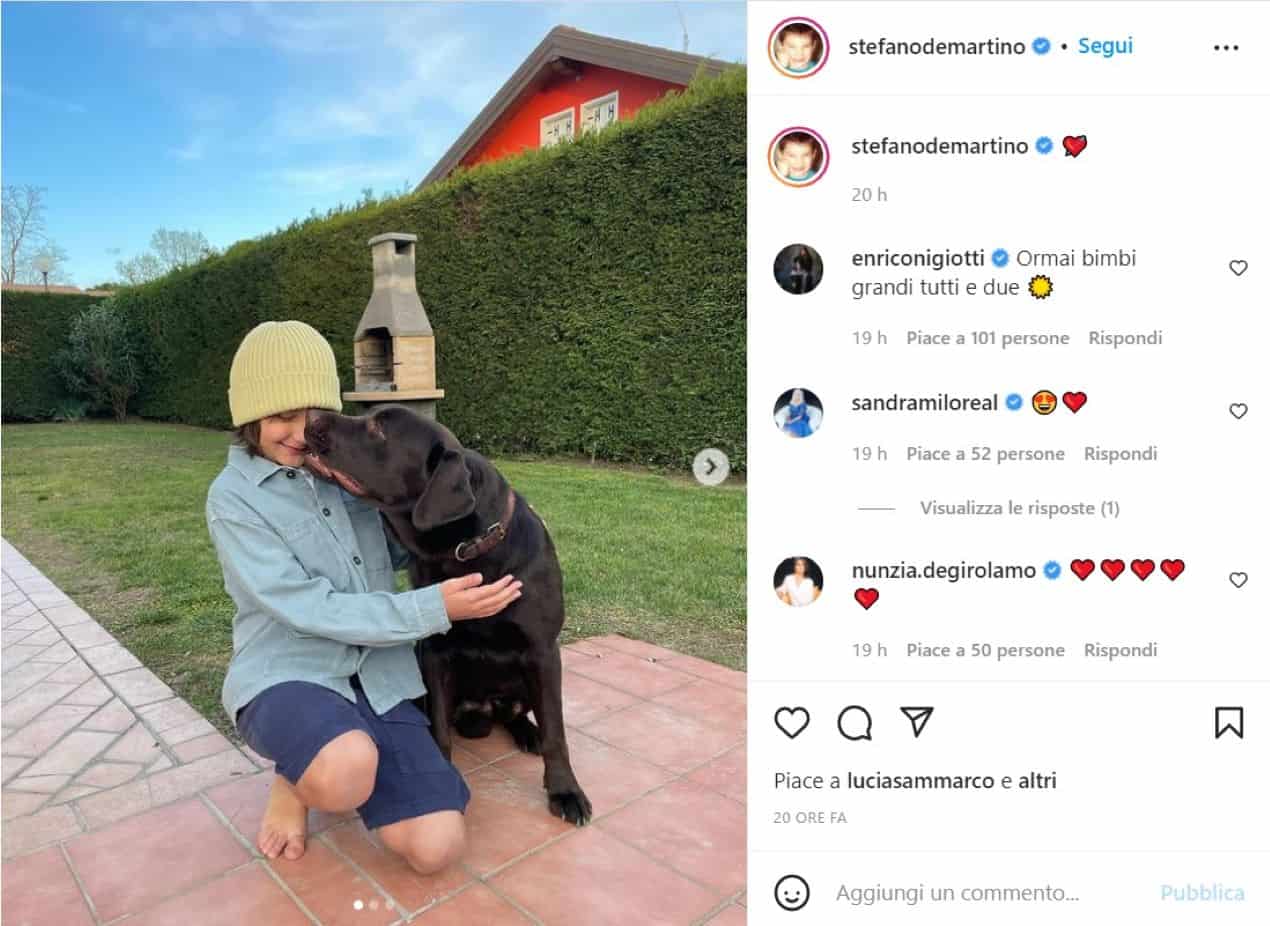 Nel giro di pochissimo tempo i fan hanno invaso di commenti l’ultimo post pubblicato da De Martino. I figliolo appare in tre scatti, il più curioso dei quali lo vede in compagnia dell’amato cane, intento a leccargli il viso. Basti citare il pensiero del noto attore Christian De Sica, che riferendosi a Santiago scrive: “Un bel miscuglietto tra te e la mamma”. Come dargli torto. “Belen dove sta” domanda invece un altro utente particolarmente curioso. Forse, chi lo sa, lo scopriremo nel prossimo post.