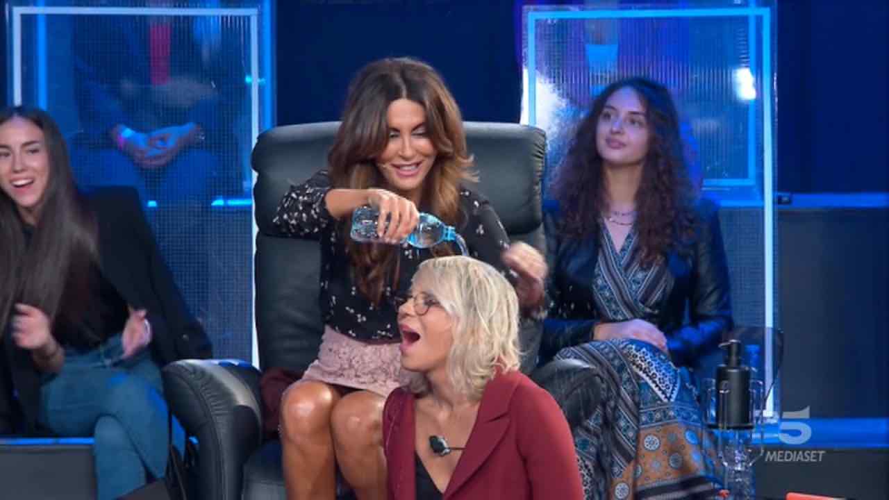 Maria De Filippi, quindi, si è avvicinata all’amica senza sospettare nulla. Seduta accanto a lei, la conduttrice aspettava di sentire il segreto della Ferilli. “Qui cerco sempre persone che possano aiutarmi a farti scherzi” ha iniziato l’attrice romana. “Secondo te ci riesco?”. Maria, a questo punto, ha risposto prontamente di no. “E quindi faccio da sola” ha concluso Sabrina Ferilli, rovesciando sulla testa della De Filippi un’intera bottiglietta d’acqua.